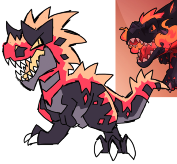 Done with base concept of fire t rex and steel carnotaur