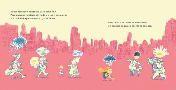 "Hay quien tiene un sol brillante sobre su cabeza. Otros, un tornado o una brisa suave.. Olivia, lluvia que se transforma en granizo según se acerca la función del cole”