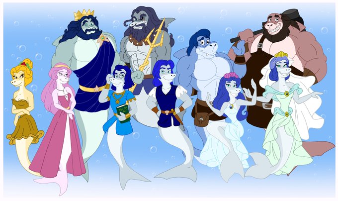Bonus: Big group of cast of my shark characters. Both in their aquatic and land forms. To all you shark fans have a great Shark Week. 🦈