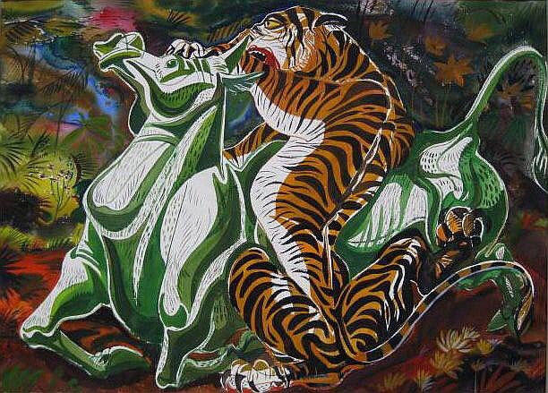 Paul Travis Bough (1891-1975) was another leading figure of the Cleveland School artists known for paintings of animals from Africa and Asia, especially tigers: