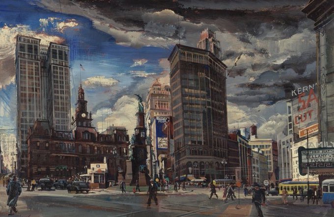 Detroit cityscapes by painter Zoltan Sepeshy (1898-1974)