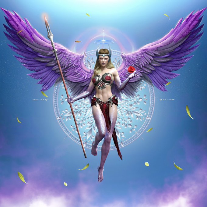 What I love is how the darker style of “Ancient Angel” is the perfect contrast to the light and bright tone of AoA. However the detail and graceful show of power are synonymous between both art. 🔥💕 https://t.co/9oTE87cSoY