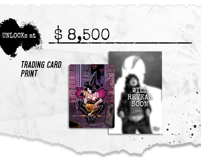 We are $100 away from unlocking our 8th stretch goal. All backers will get a trading card and this holofoil print by series colorist Vittorio Astone.
