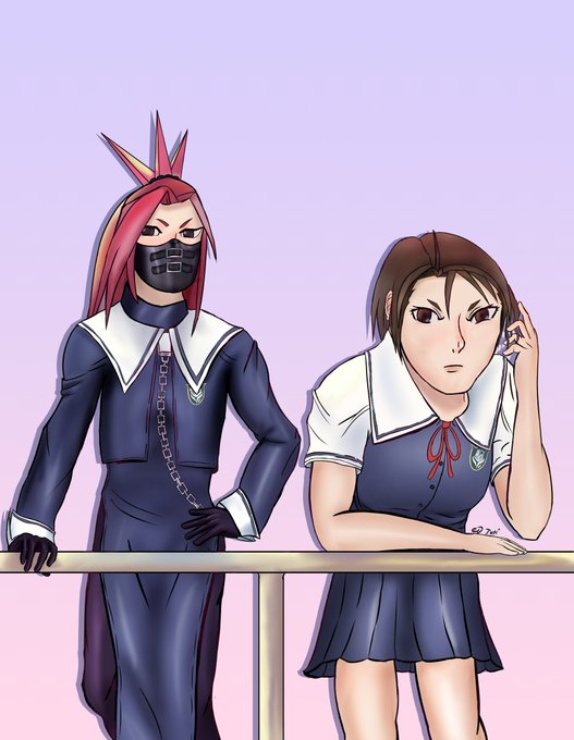 @NoponDigi I'll give you a run down about her. So basically Akira came to a all boys school to look for her brother. That's why she has that motorcycle getup. She acts tough with her motorcycle gear, but when's she's not wearing it she's shy and friendly.