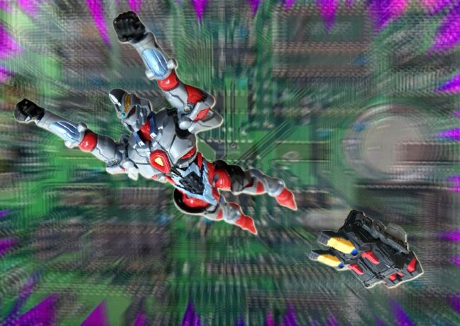 宙を舞う怪獣に対し、同じく宙を飛び猛速で追い上げるグリッドマン。