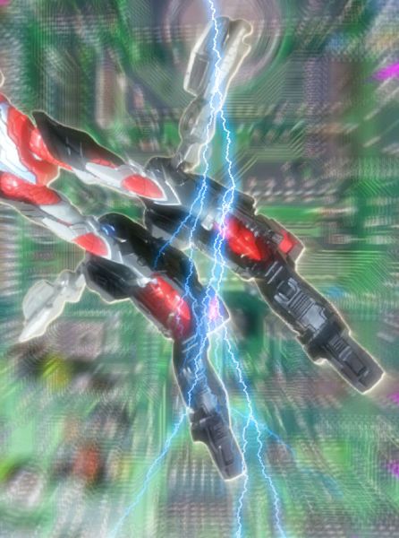 パーツの飛来と同時、合体に必要なエネルギーがグリッドマンに注がれる。そのパワーで足元の凍結を砕き、飛翔するグリッドマン。その脚に新パーツ・フットブースターが装着された。