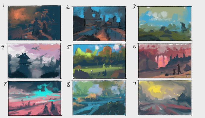 Here's todays thumbnail sketches and the painting progress we made. I had a really good stream, thank you everyone for hanging out. <3 <3