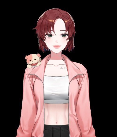 여러분들이 좋다고 투표해준 의상과 헤어 그리고 고양이 귀! 어깨의 강아지는 우리 쮸글단을 상징하는 강아지에요.