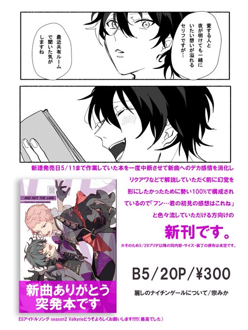 05.29秘密のメンテナンス|インテ大阪新刊|宗みか|詳細は4枚目をご覧ください🕊お品書きやpixivのsampleは明日UP予定です ▼ 「AND NOT THE LARK」