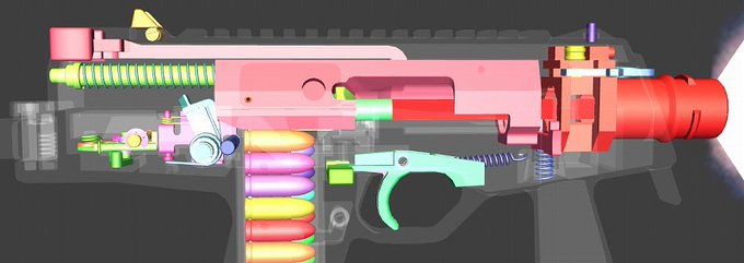 ②トリガーを引くと弾が発射
