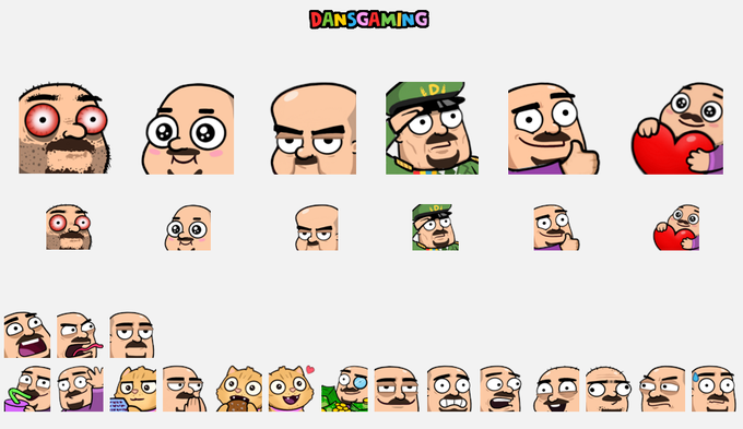 I'm redrawing many emotes for @Dansgaming in a slightly new style for something secret happening soon, he just uploaded this batch now, have fun 😄
