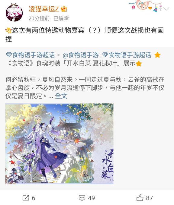 食物語 開水白菜 夏花秋葉 手に入れ方 憶絵(課金) 戦敗絵も凌貓先生の作品です,嬉しい 八仙:おおれも... ( ̄﹁ ̄)