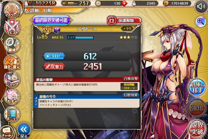 3倍は1SSRだけでしたが幻獣祭が珍しくピックアップした! 残す所水と光か。