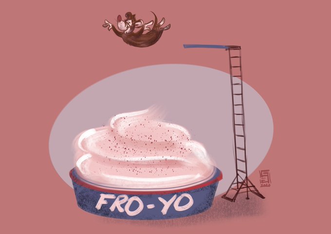 It’s probably going to be thousands of us painting a mouse jumping into a yoghurt pool this week but here’s my #procreate #artmash anyway. #cartoon #art #illustration