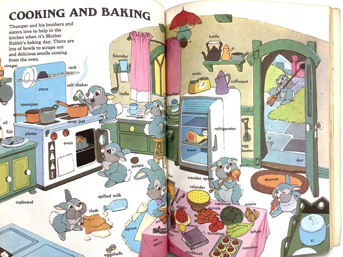 ミッキーやミニーはもちろんのこと、プーさんやアリス、とんすけやジミニークリケットまで、所狭しとたくさんのディズニーキャラクター達が動き回っていてとてもかわいいことばの絵本です。1972年刊行。