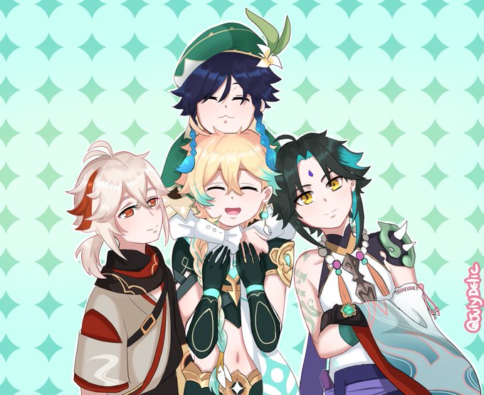 Happy new year 🥳 ending the year with my favourite boys #Aether #Albedo #Xiao #Kazuha #venti #GenshinImpact