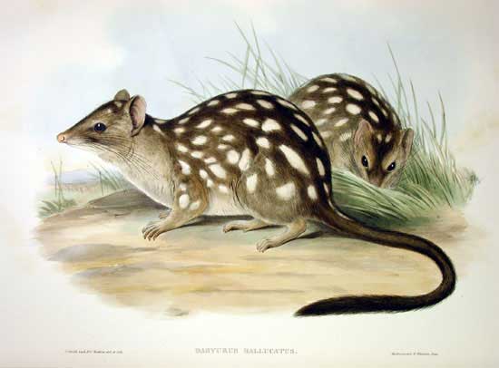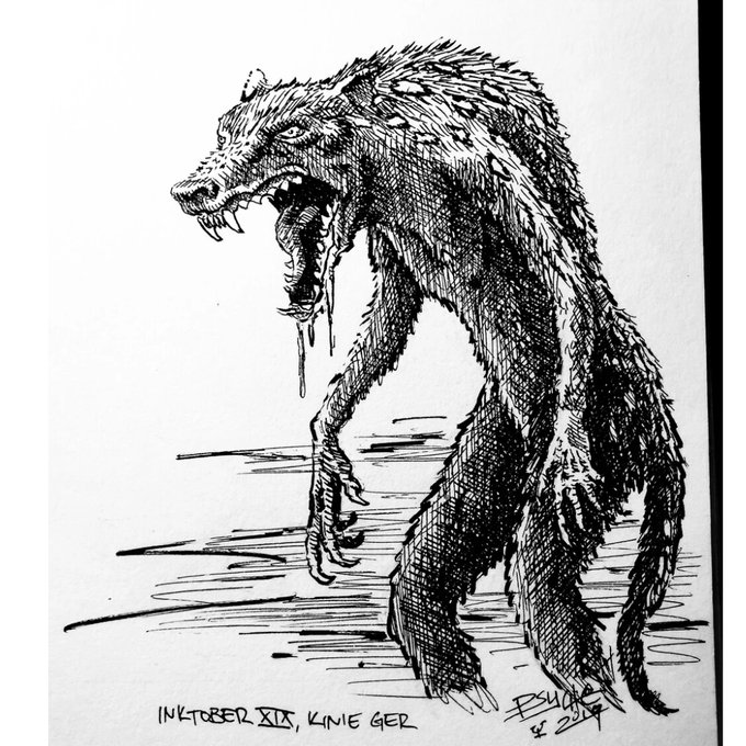 A kinie ger is a half-quoll and half-human creature which kills anything it comes across until killed when it diminishes into a quoll. #quoll #kinieger #mythology #creatures #beasts