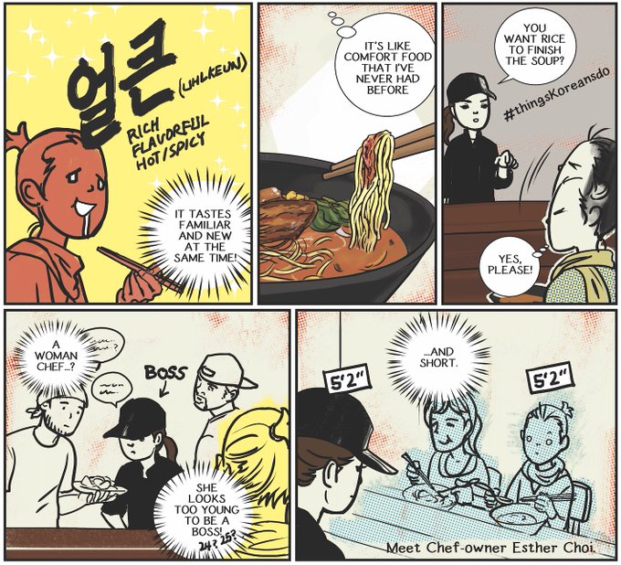 I interviewed a tough, smart and talented Korean American chef some years ago when she first opened @mokbar_nyc, and drew a short comic about her journey as a young female chef- who now kimchislapped the new IronChef show?! Chef Esther Choi, I’m so so proud.