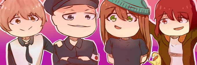 Made a twitter header for myself, the ones in this art (left to right) are @FleqCreative, Me, @TrixMixing and @verillionn