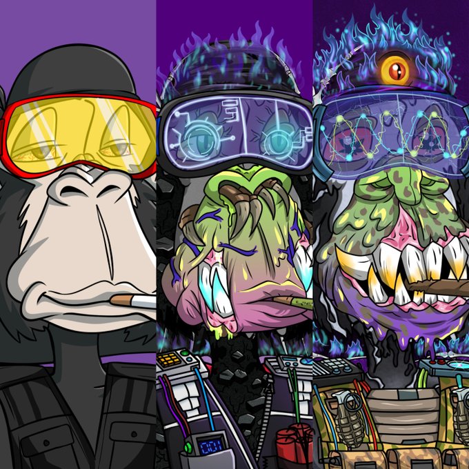 Don't forget to complete your @Ape_NationNFT 3 sets of 3 to join the 25% Royalty Raffles from Ape Nation, Jungle Juice & Mutation Nation!👀