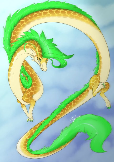 Long neck version for @Coop_D_Ragon is done! She lined and flat colored, i did the sketch and shading.