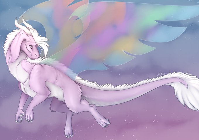 A colored sketch of their character as a noodle dragon for @Somnilux
