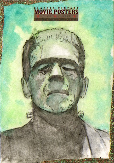 #Frankenstein's #Monster sketch card I painted for a #horror trading card set. #boriskarloff