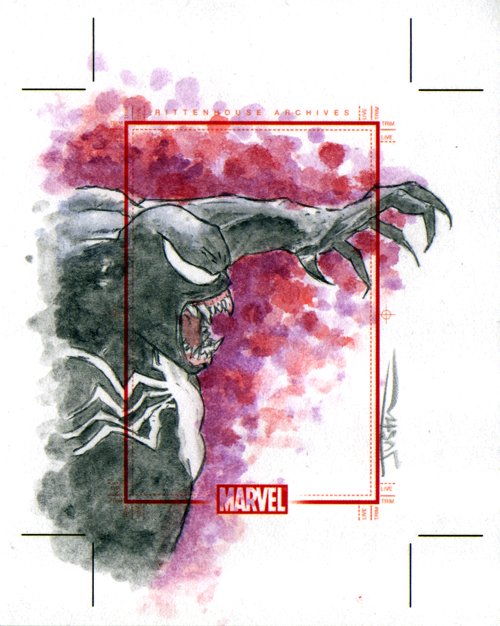 #Venom sketch card I painted for a #Marvel trading card set. #eddiebrock #spiderman #comics