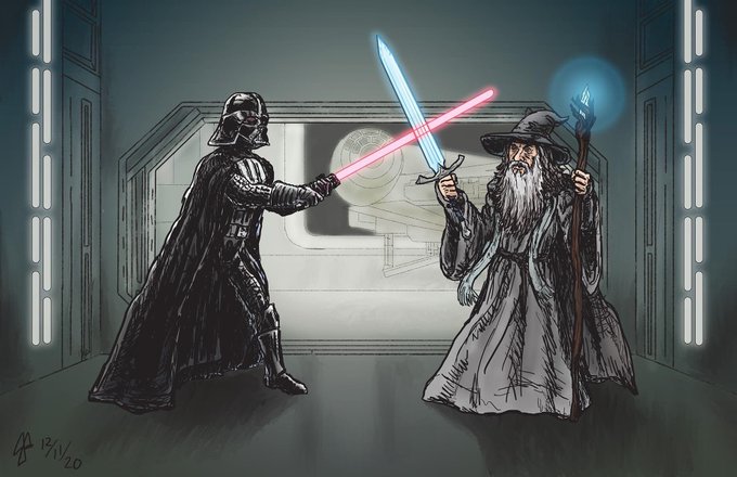 Frodo and Sam and Gollum (and Gandalf apparently) take a trip Over the Mordor Wall! A loving tribute to two of Elijah Woods' best roles. That's a rock fact, precious! https://t.co/dUu6iLiYDl #lotr #otgw #rockfact #mashup
