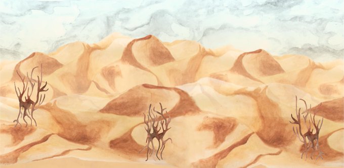 Got some concept art done for my desert level. What other kinds of flora should I paint for this? I got a couple of dead trees... maybe some tumbleweed? a couple of rocks? Dwayne the rock Johnson as scorpion king? 🦂🏜️