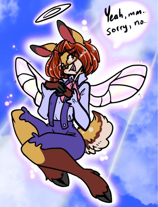 I tried to give huxcyn larger floofier wings like from the 90's anime xD the reasons shes higher then Ezuu is because shes using said wings xD