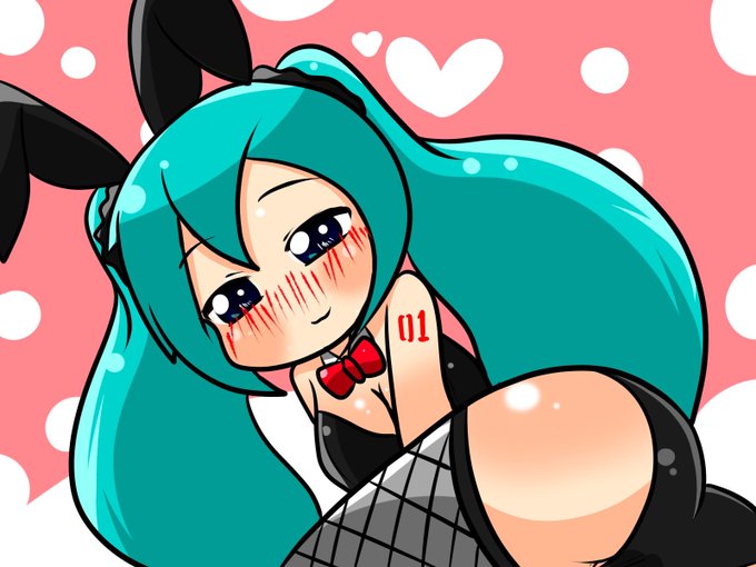マスター!どうですか?バニーコスチューム♫ ……ふふっ♡大きくしちゃってますね…///(何を) #初音ミク #バニーガール #お絵描き