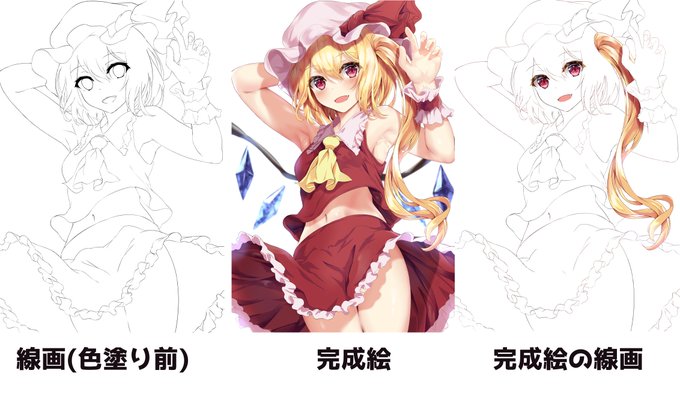#皆さん線画と塗った後を見せてください 腋の形状は、色塗りだけで表現するのが好きです