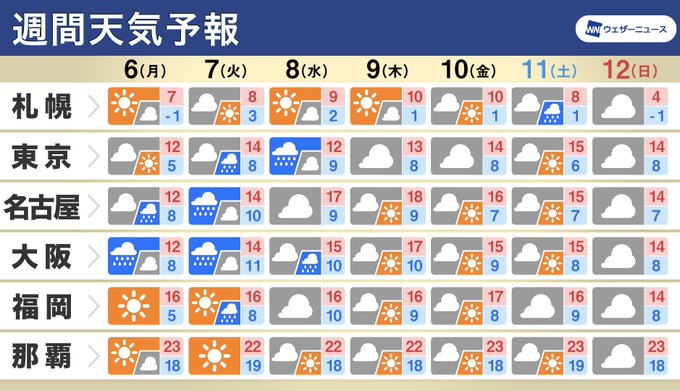 明日 #12月6日 (月)も朝の冷え込みは厳しいそうですが、来週は西から少しずつ寒さが緩みそうです🍠😋👍。
