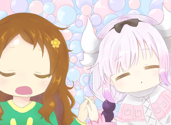 すやすや💤 #絵描きさんと繋がりたい #イラスト #小林さんちのメイドラゴン #カンナ #才川リコ