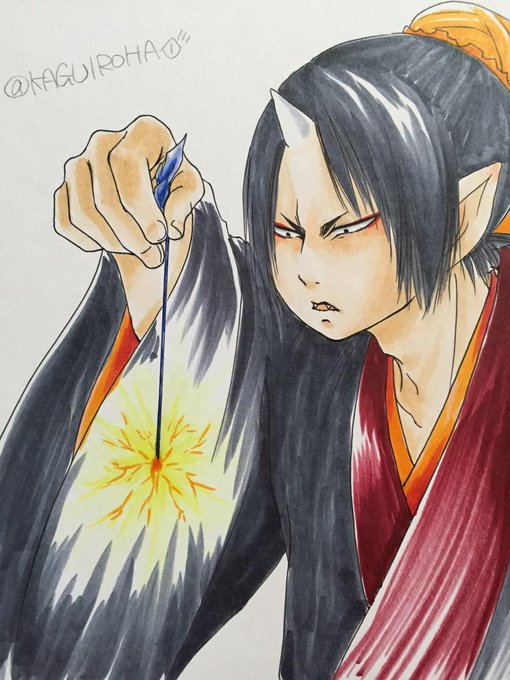【#鬼灯深夜の真剣お絵かき60分一本勝負】鬼灯ワンドロ。若鬼灯+花火。 落ちろ落ちろ落ちろ落ちろ落ちろ落ちろ