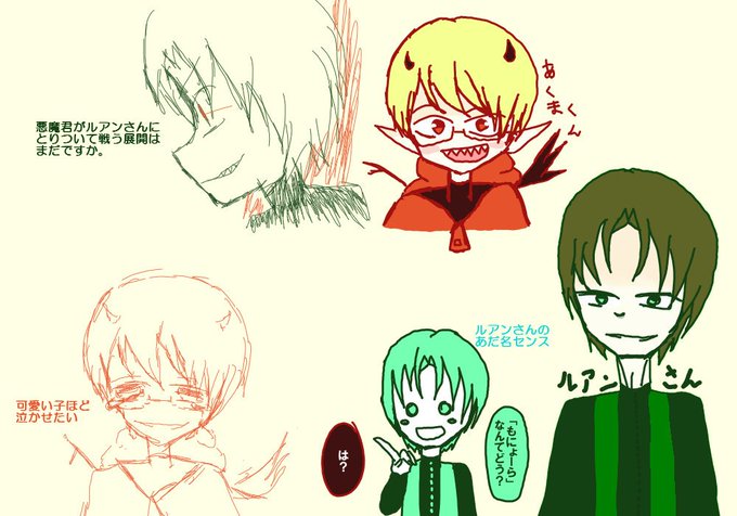 うちの子とカケラちゃん(@Kkkkkkkk0208 )家の子の創作落書き~ 悪魔君が可愛いのなんの。