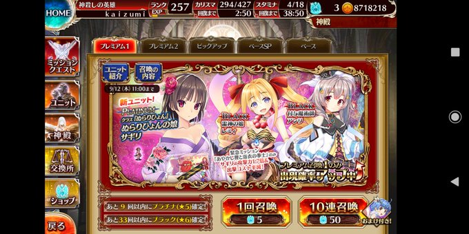 ピックアップ内容が欲しい娘ばかり&二、三回引けば天井だったので引いた サギリは来なかったけど黒は大勝利!アンリ(゚∀゚≡゚∀゚)!!