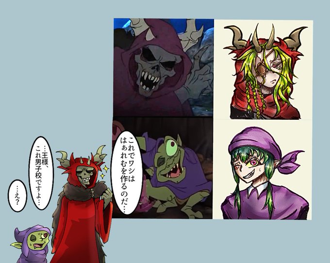 #twst_OC #ツイステ創作生徒 コルドロンの悪役のホーンドキング様とクリーパーくんのNRC生徒をふと考えたら止まらなくなった者の末路がこちらです…