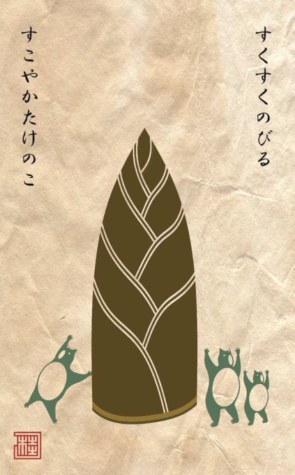 「タケノコと河童」です。 (描いている人がタケノコ好きというだけの気もする…)