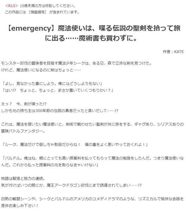 アルファポリスの投稿小説「魔法使いは、喋る伝説の聖剣を拾って旅に出る……魔術書も買わずに。」が面白い!! https://t.co/YqjCNg1fUz #アルファポリス