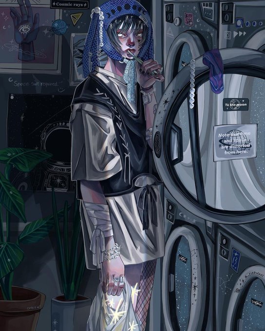 「生きている」人物描写に、 #ヲガト さんの技量が光る。印象の深部に突き刺さる眼光、すべやかな素肌。手触りが伝わるファッションの素材感に至るまで、繊細に色彩を重ねながら表現している。画面越しに広がる”ヲガトワールド“ 今後の展開も見逃せない。