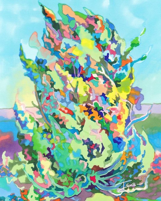 鮮やかな色彩で生命力を描きだす #大久保つぐみ さん。ひとたび作品に向き合えば、爽やかな風に光の粒が弾け、時にはむっとするような濃い緑や土の匂いに包まれるだろう。色の重なりや滲みを巧みに操り描かれるつぐみさんの世界は、どこか楽天的な太陽の光が降り注ぐ。