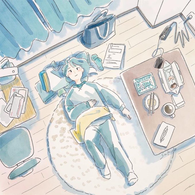 暖かい光が差し込み、爽やかな風が吹く#水元さきの さんによるイラストは、何気ない日々や学生時代の青春の記憶を呼び起こします。青を基調とした作品は張り詰めた空間も柔らかな空間も作り、場面ごとに変化する空気の流れにも注目です。