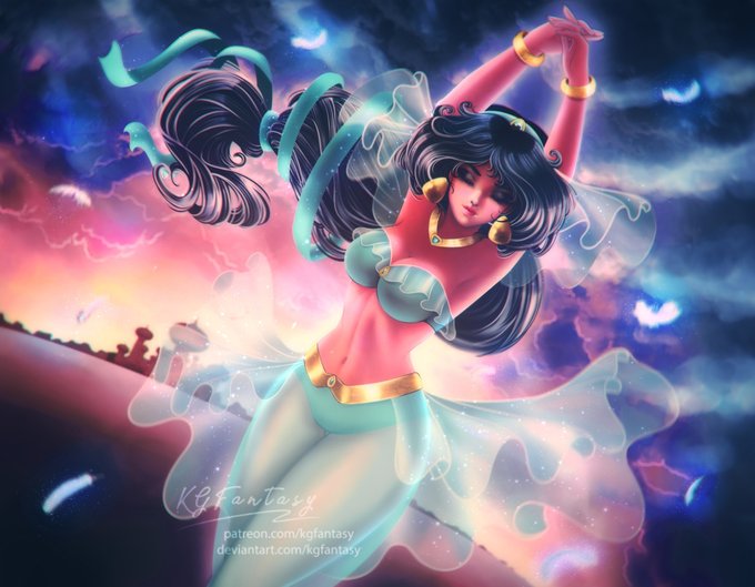 #Art | #Disney | #ArtistsOnTwitter | #Aladdin | #CommissionsOpen | #Aladdin2019 | #Jasmine | #ArabianBeauty | #Pinup | #KGFantasy