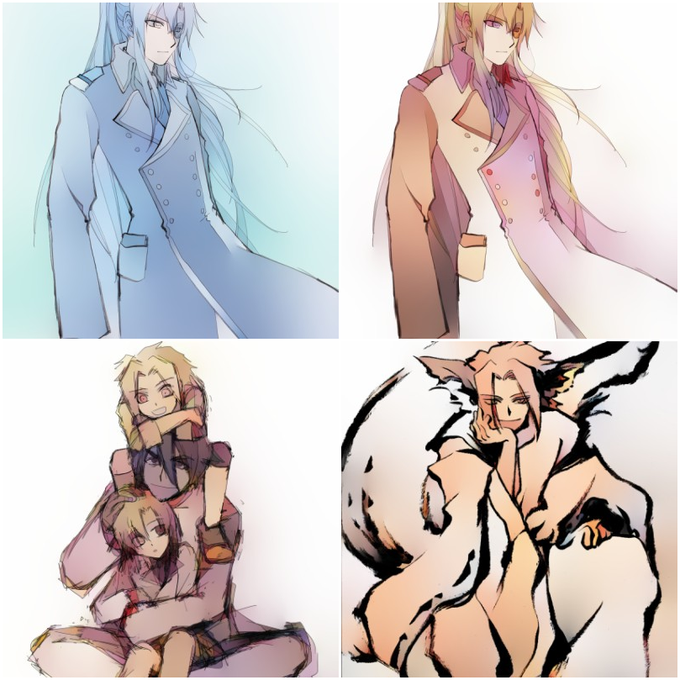 フォロワーさんの推しが描きたいタグに興味があったけど反応なかったら悲しいので貴様の推しを描かせろと強要してみた。すすたけさん(鬼l灯様+α)とMioさん(アlミルさん)と春さん(環くん)。振り幅がものすごいけど普段描かない絵柄って楽しいですね……ありがとうございました!