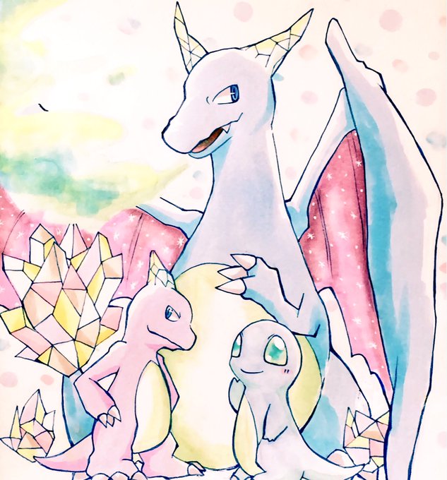 アローラの姿ヒトカゲリザードリザードン(妄想)尻尾の炎は氷になってて光が当たると色んな色にキラキラ光る(妄想)