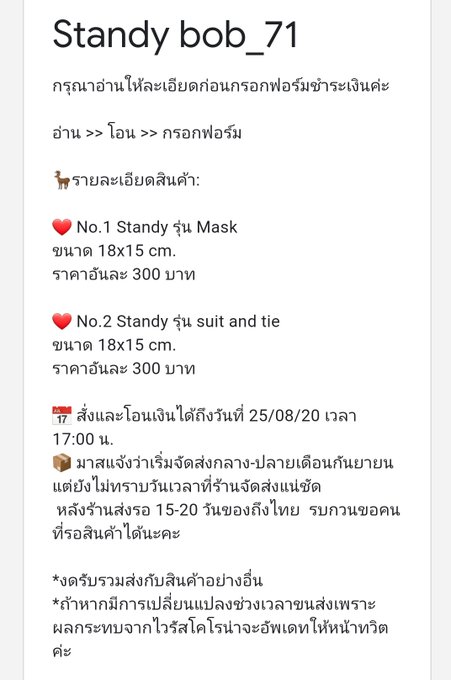 📲 สั่งและโอนเงินได้ถึง 25/08/20 เวลา17:00น.