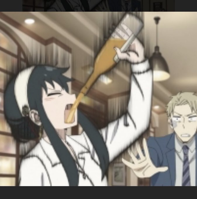 はやみんキャラが酒をがぶがぶ飲んでるシーン、どこかで見たことあるww #没落貴族 #SPY_FAMILY #早見沙織