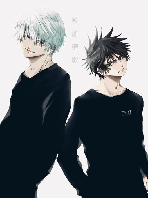 五伏と玉犬 〜さんぽに行きたいんだけど〜 白黒(ヤダ〜やめてよ〜😖) 五「何だよ、犬は散歩好きだろ!」 伏「嫌がってるのは散歩ではなくて五条さんですね…」